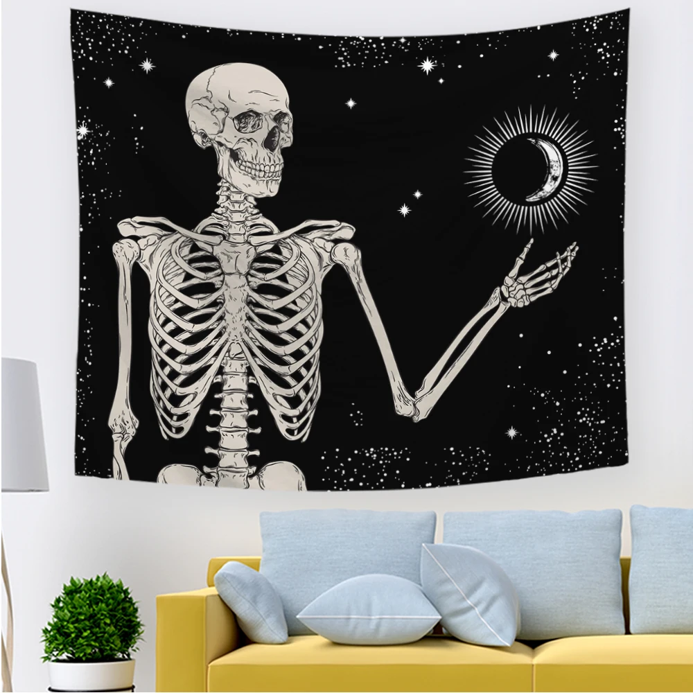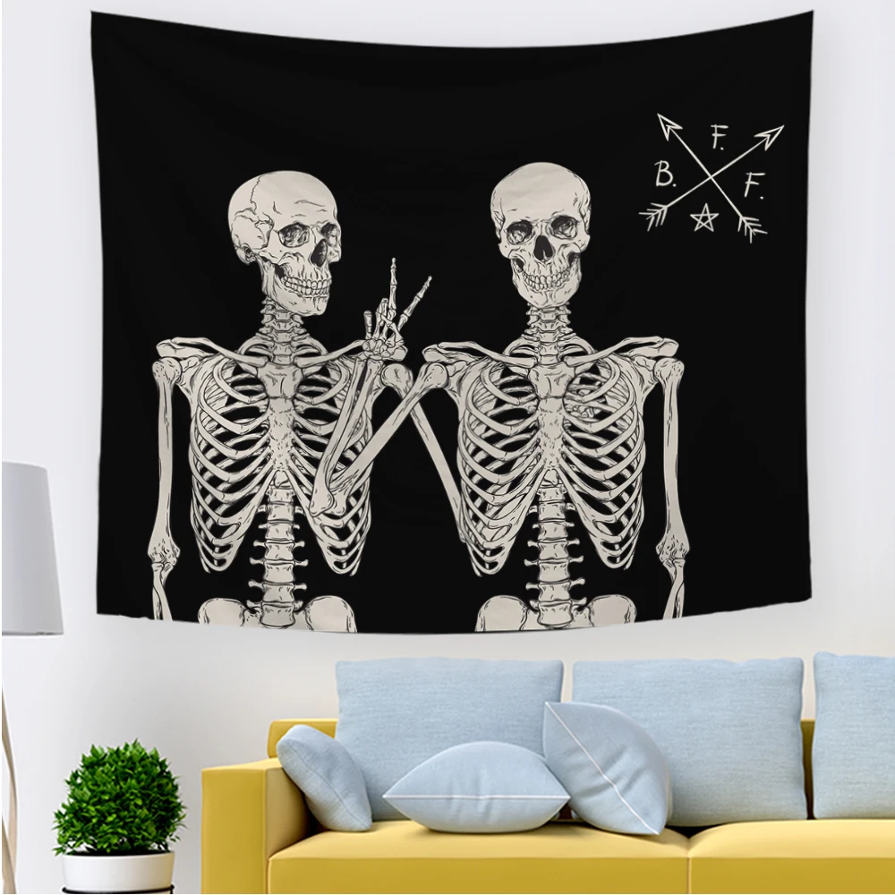 Черно-белый гобелен с черепом, гобелен для влюбленных, настенный гобелен с человеческим скелетом, настенный гобелен хиппи для декора комнаты