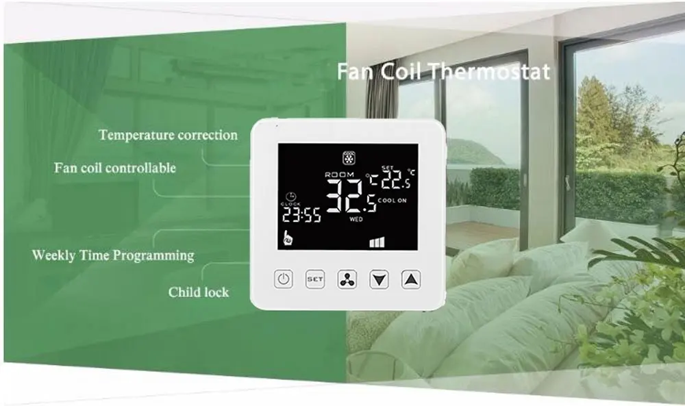 3. Термостат с вентиляторной катушкой подходит для управления центральным кондиционированием воздуха и вентиляторной катушкой.