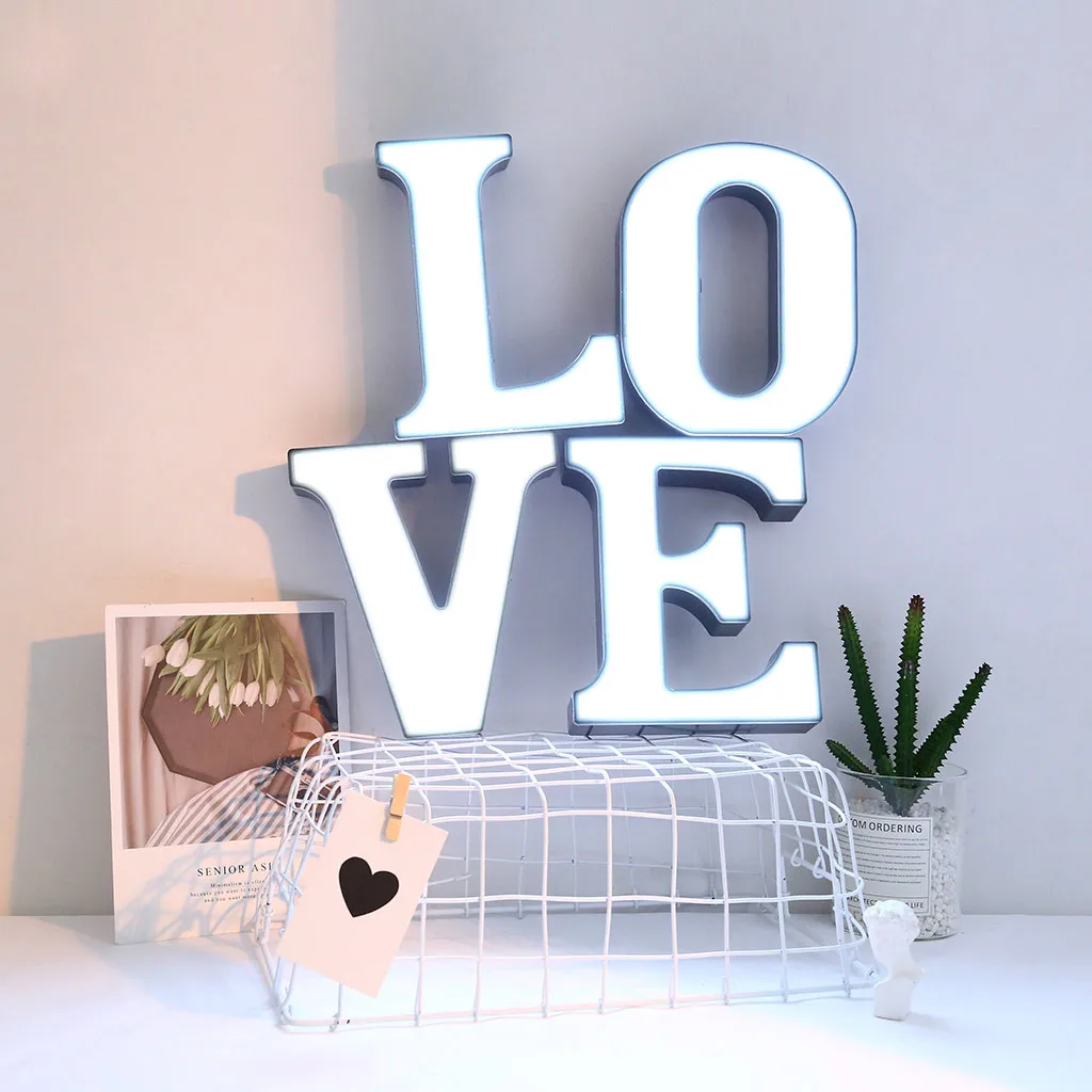 1 x Светодиодный светильник с буквенным принтом (батареи и другие предметы не входят в комплект)