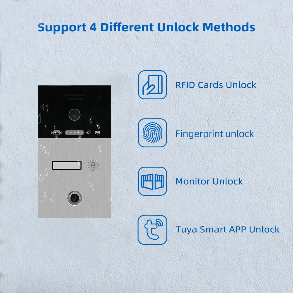 С помощью этой системы внутренней связи вы можете использовать карты, отпечатки пальцев, монитор и телефон, чтобы разблокировать дверь, что будет более удобным!