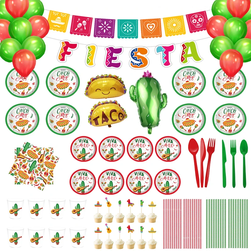 Мексиканская Фиеста кактус тема вечерние одноразовые столовые приборы бумажные тарелки салфетки под чашки Тако воздушный шар мексиканские вечерние принадлежности для декора