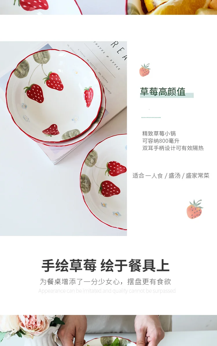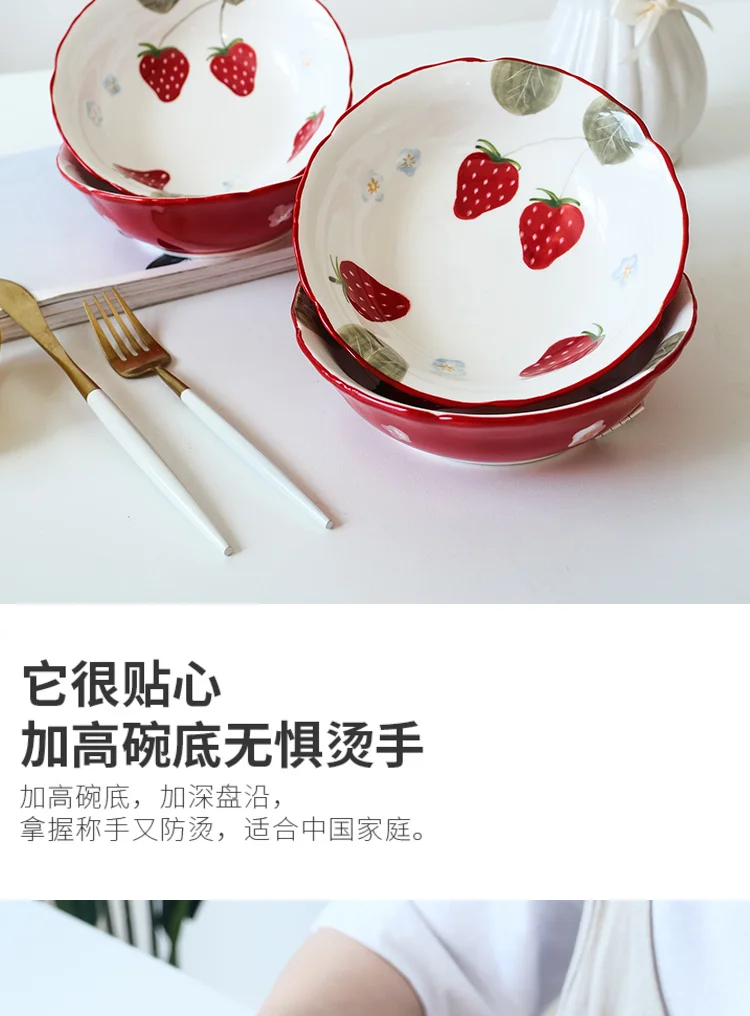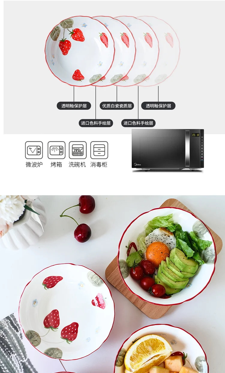WSHYUFEI 6Inch Strawberry Ceramic Salad Bowls Dessert Bowl Soup Noodle Bowl Heat Resistant Microwave