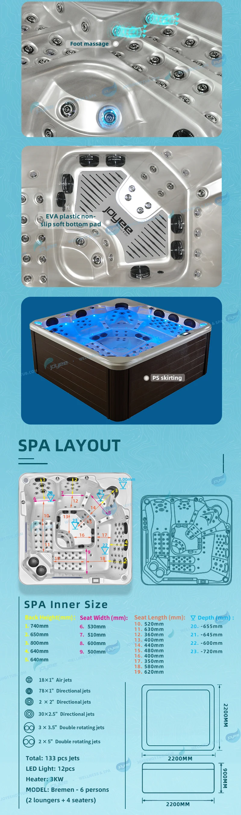 JOYEE 6 человек свободно стоящий гидро джакузи массаж вне двери спа ванна заводские цены ленивый открытый спа зима гидромассажная Ванна balboa