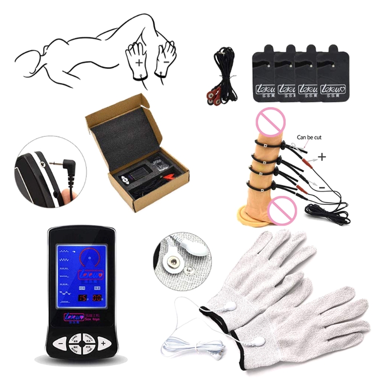 U1JD Electrostimulation Set Electrosex Stimulation Device With Ring Glove and 4 X Pads