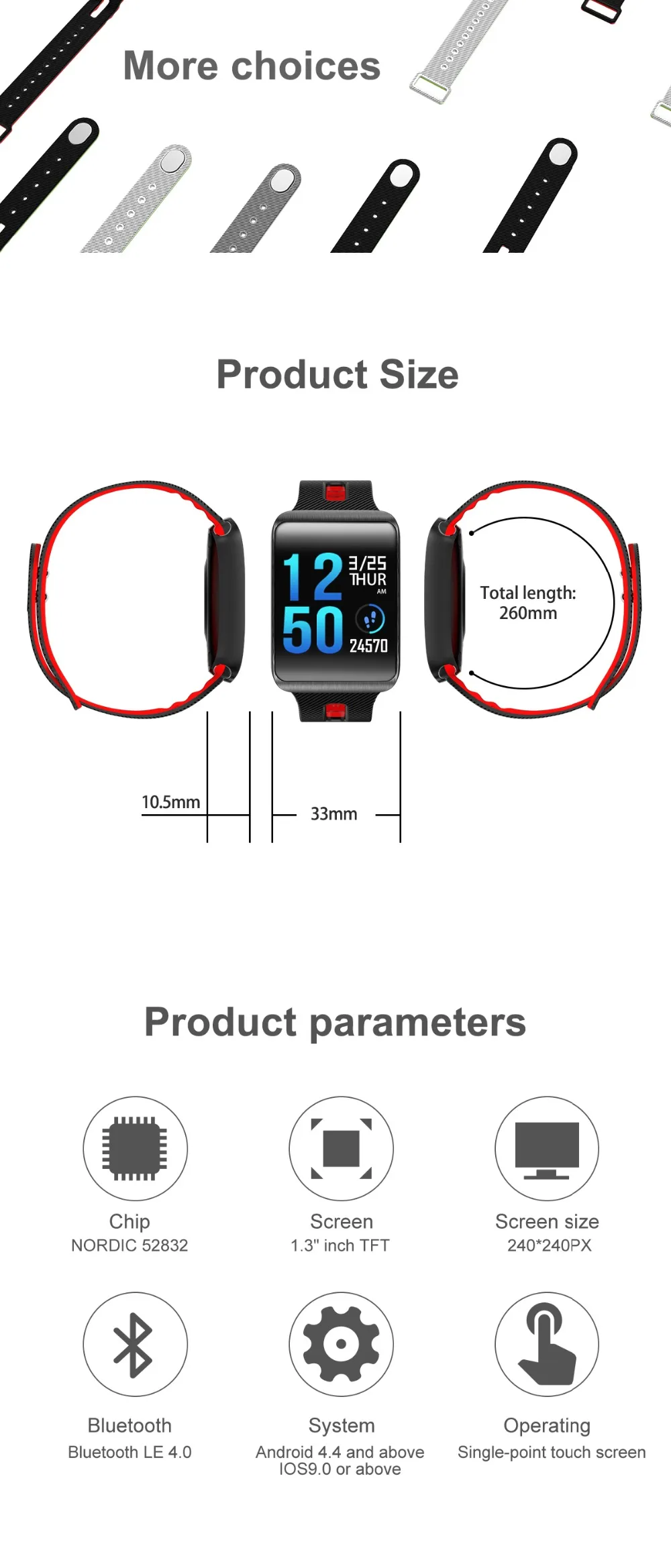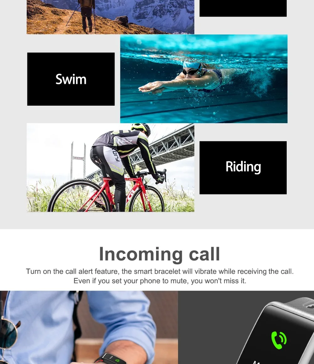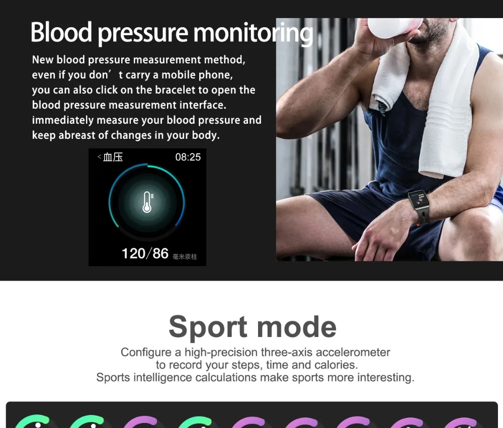 Функциональная конфигурацияОсновные функции: спортивный шаг, спортивные калории, обмен здоровьем (через приложение, отправка друзей по кругу) Настройка спортивных целей, обнаружение сердечного ритма в реальном времени, обнаружение артериального давления в реальном времени, мониторинг кислорода в крови. Напоминание о сне, напоминание о сидячем положении, напоминание о тревоге. Многофункциональный спортивный режим, плавание, бег, езда. Низкомощный чип, здоровый спортивный стиль, ссылка на IOS Android мобильный телефон, обмен данными о здоровье, IP67 Три анти-машинных водонепроницаемых стандартных дизайна. Выбор различных режимов ожидания. Эксклюзивный пользовательский интерфейс sports UI.Функция Bluetooth IOS Android синхронизирует SMS, телефонную книгу и оповещение о звонках через Bluetooth. (Встроенный браслет не имеет телефонной книги. После синхронизации с помощью Bluetooth можно отобразить имя телефона.) Эта функция поддерживается библиотекой шрифта.Поддержка языков ed: основной язык поддержки браслета: латинский, кириллический, китайский, японский, корейский китайский, традиционный, английский, немецкий, испанский, итальянский, французский, португальский (португальский), португальский (Бразилия), русский, индонезийский, малайский, польский, вьетнамский, иврит, арабский, персидский, тайский, Бирманский, турецкий, может охватить 149 национальных языков (браслет может поддерживать 6 языков в приложении)