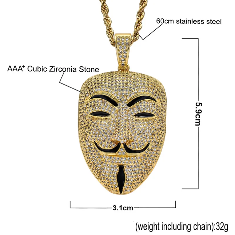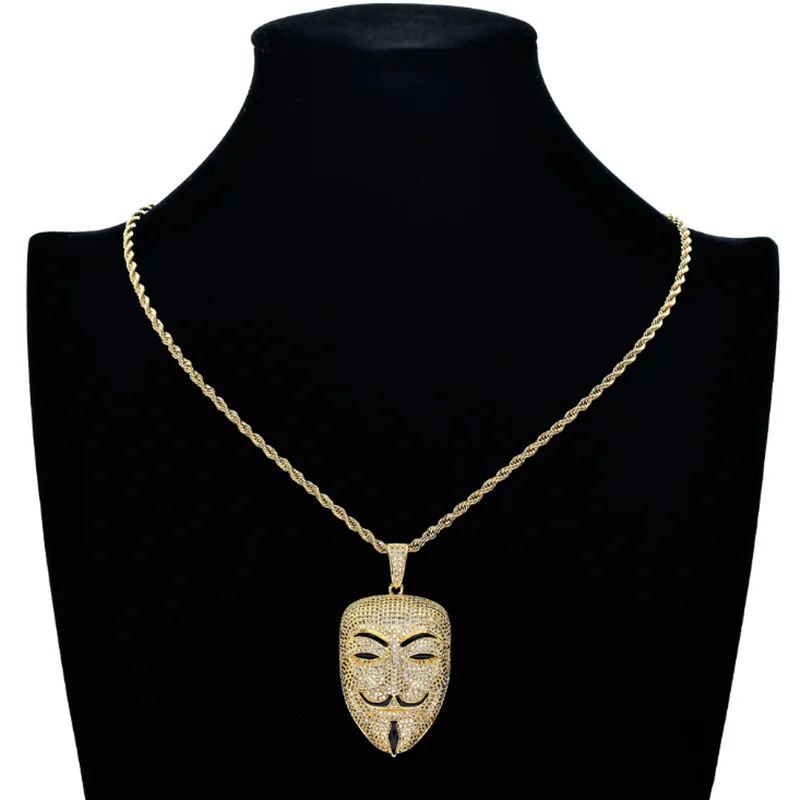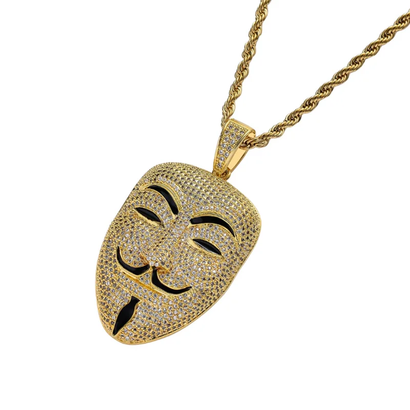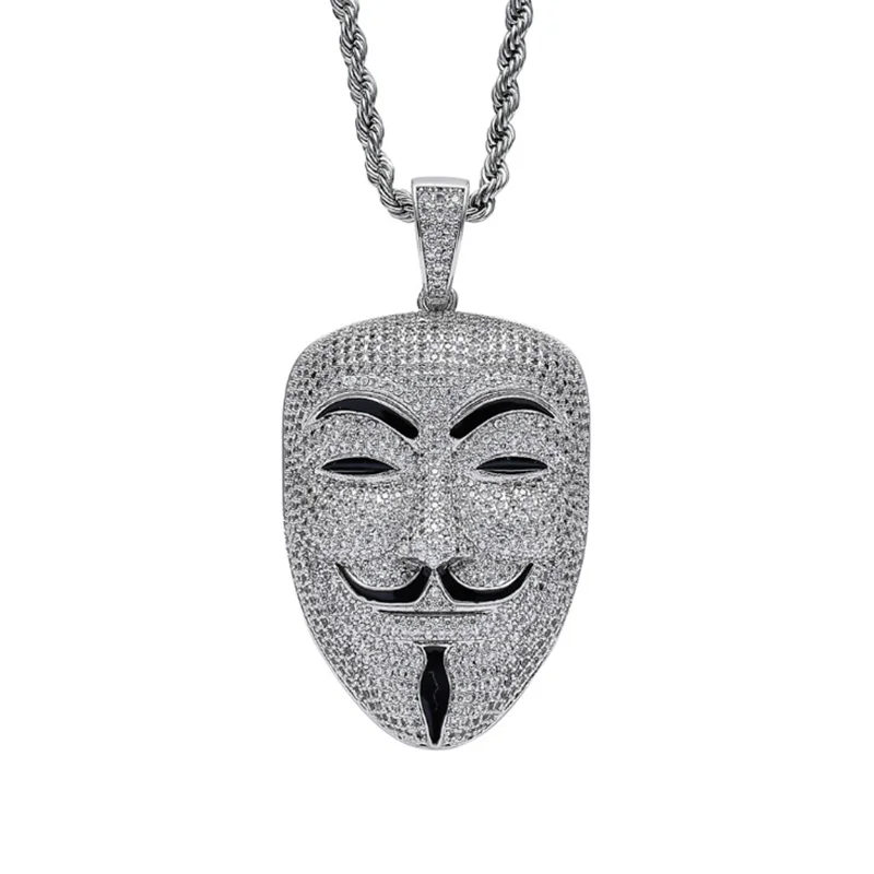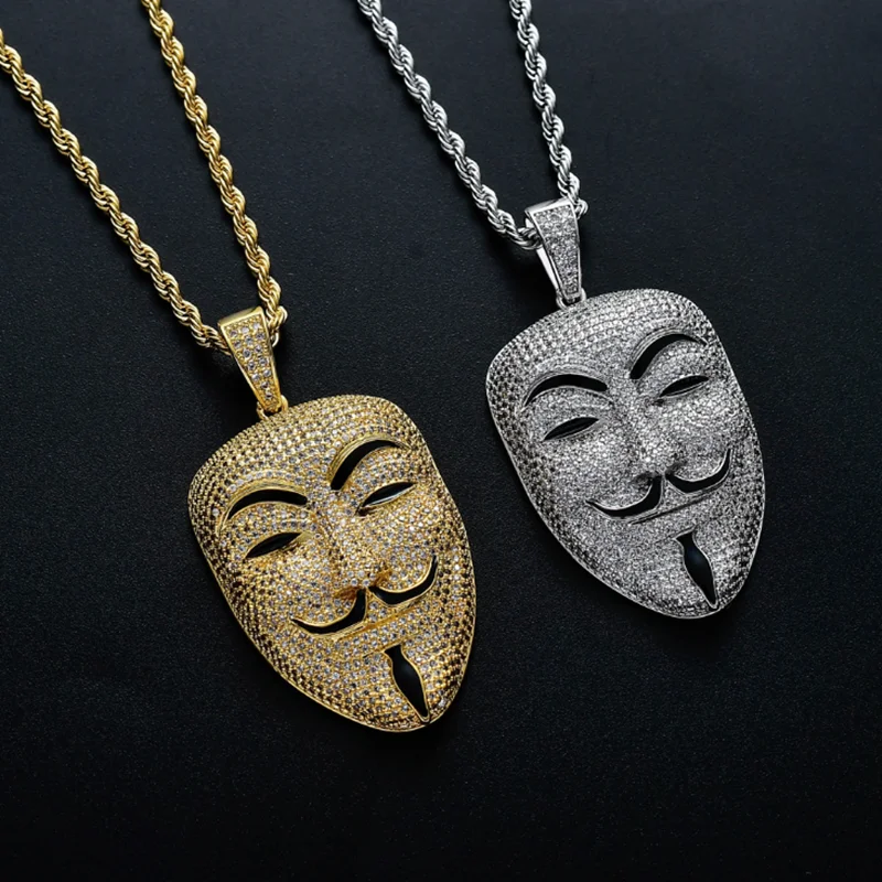 Стразы, ожерелье AAA, кубический циркон, маска, кулон, хип-хоп цепь, роскошные ювелирные изделия
