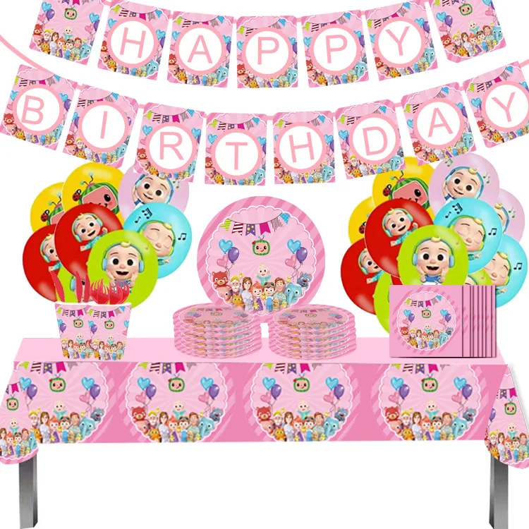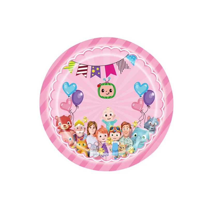 Розовый Cocomelon тема Дети день рождения поставки бумажные тарелки и стаканы салфетки соломенные праздничные украшения из шаров для мальчиков Baby Shower