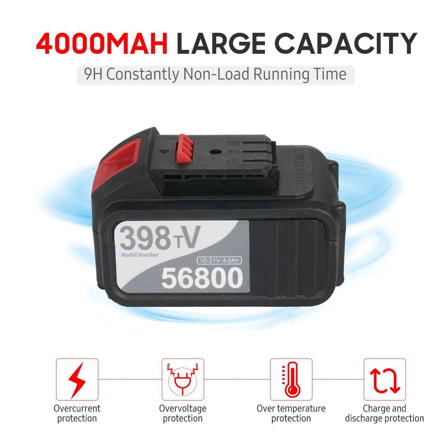 21V 4.0A/6.0A Максимальная батарея-1 упаковка/2 комплекта опционально, 21V Макс 4000mAh или 6000mAh батарея опционально. Литиевая батарея большой емкости достаточно мощна, чтобы держать дрель постоянно работает в течение 9 часов, когда не загружается. Индикатор на передней части ударной дрели отображает, сколько энергии осталось для меньшего времени простоя на рабочих местах.