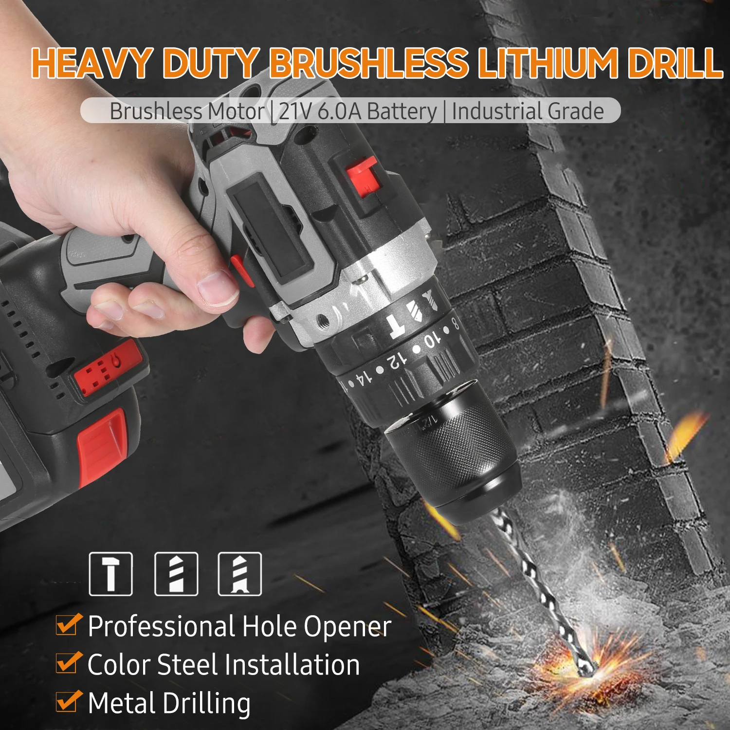 Бесщеточный двигатель Brshless и 200 нм крутящий момент-высокая производительность бесщеточный мотор оптимизирует эффективность машины, увеличивает срок службы двигателя 10X и на 50% больше времени работы за заряд по сравнению с матовым двигателем. Максимальный 200нм (2655 в фунтах) крутящий момент 10X больше крутящего момента, чем подавляющее большинство дрели на рынке, легко удовлетворяет ваши потребности в обработке широкого спектра материалов от завинчивания до металлических или деревянных сверл и отверстий.
