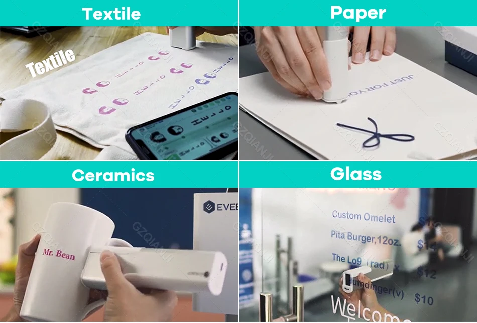Печатающая ручка позволяет печатать на любом материале. Некоторые материалы, на которых принтеры не могут печатать, но Печатающая ручка плавно скользит, включают: