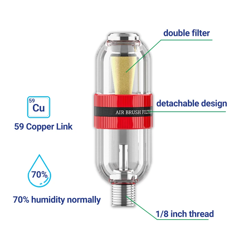Сепаратор для масляной воды: влагопоглотитель классического типа airbrush, который может фильтровать 30% влаги в воздухе. Делает ваш поток воздуха сухим и чистым от аэрограф.