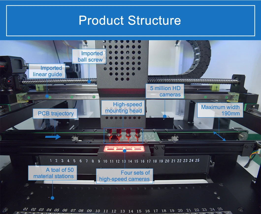 Машина SMT550 с шариковым винтом и сервомотором, который является более стабильным и более точным, чем шаговый двигатель и.