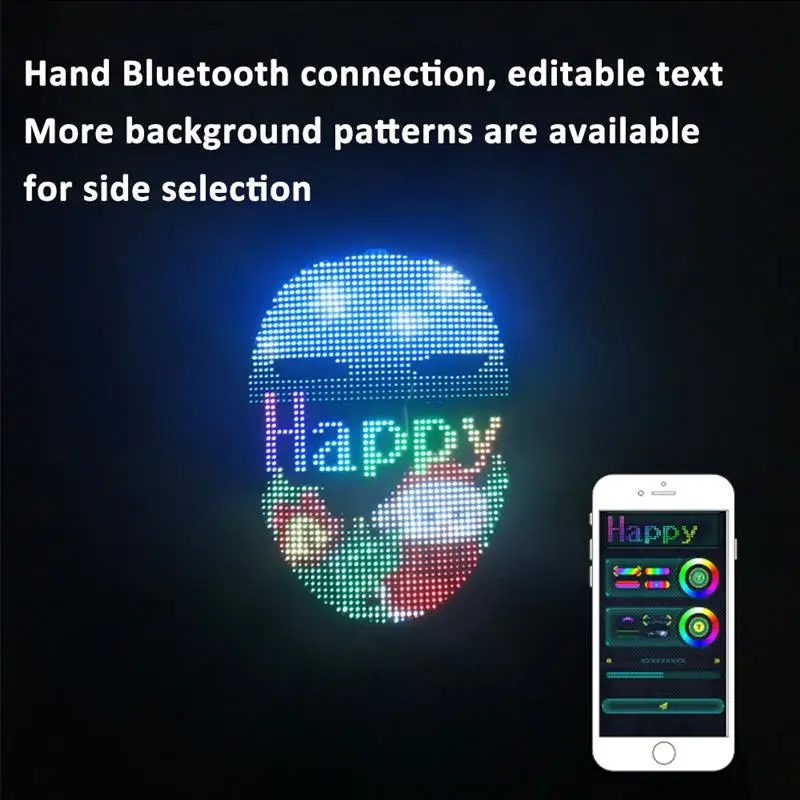 После подключения к светодиодный маске с помощью Bluetooth, он может быть запрограммирован через приложение «Shine», которое может быть установлено на монохромный, вспышка, выцветание, гладкая и многоцветная.