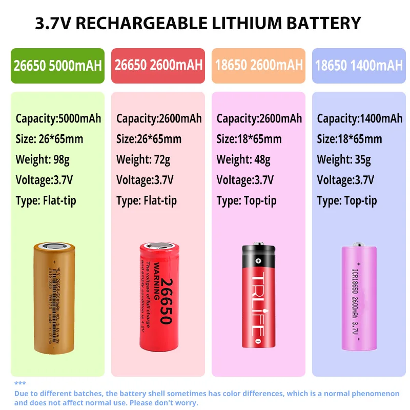 Конфигурации аккумулятора: 2 аккумулятора 18650 (Тип верхнего наконечника)