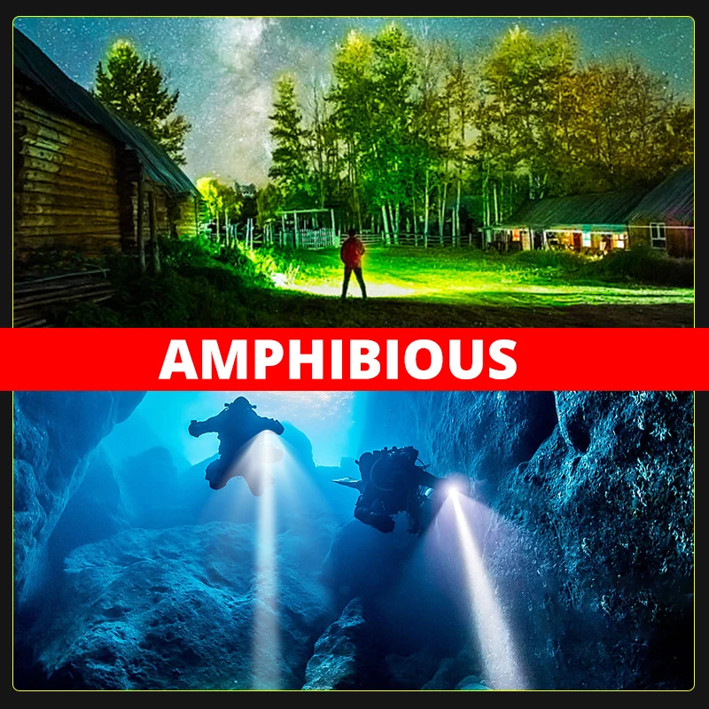 IP8-rated водонепроницаемость, профессиональное оборудование для подводного плавания с аквалангом и сноркелингом. Идеальный открытый фонарик для рыбалки, дайвинга, плавания, пеших прогулок, парусного спорта, кавинга.