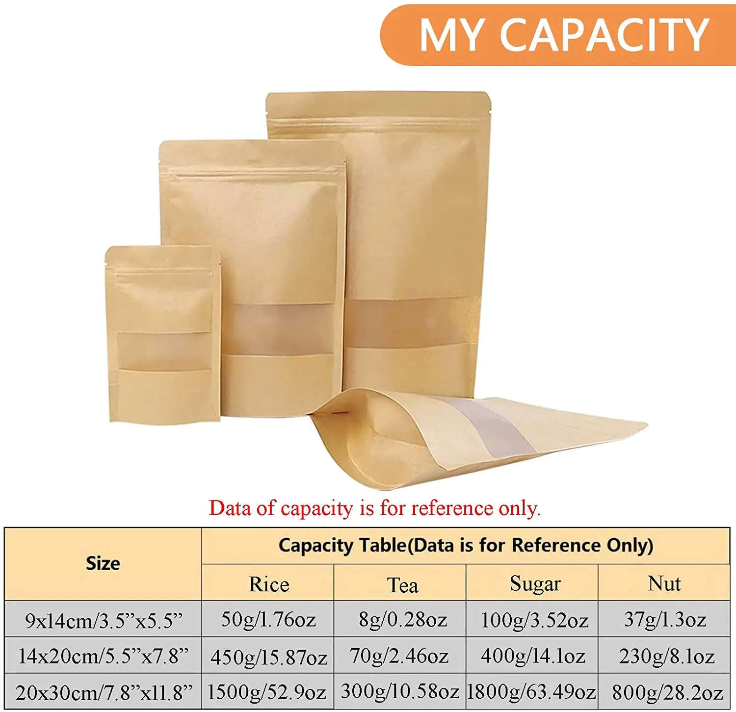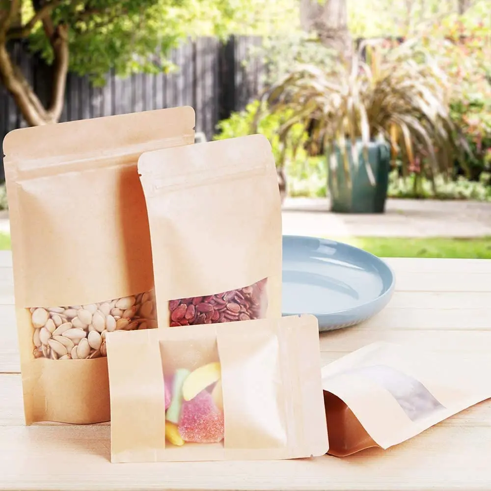 【Food Grade Pouches】 Made of kraft material and plastic window, safe for food and eco-friendly. Waterproof outside and anti-oil layer inside, which suit for packing some oil contained snacks food products, for retail and storage.