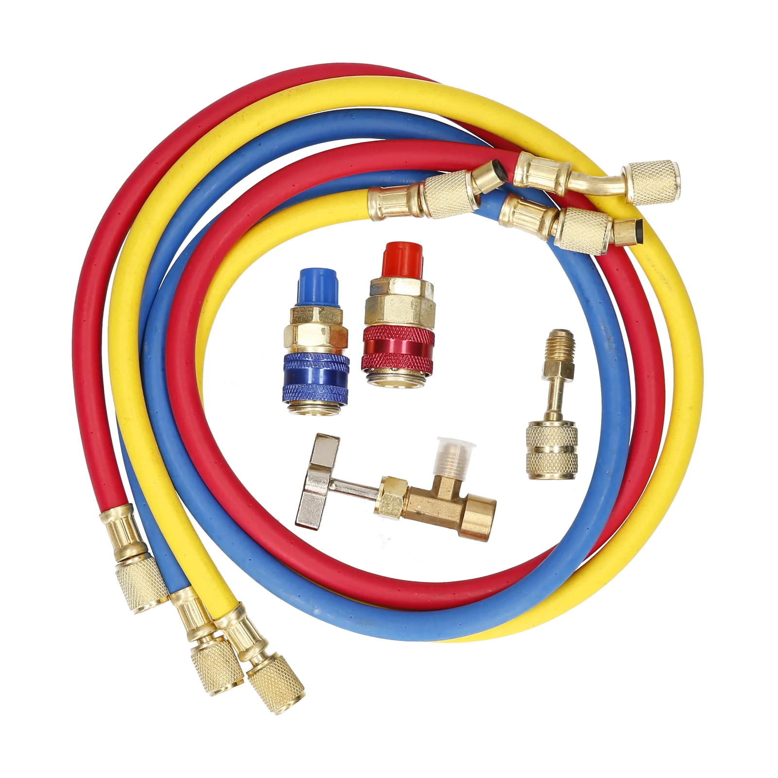 AC датчики, автомобильный AC Датчик набор для R12 R22 R404A R134A , 3 пути AC манометр набор с шлангами муфты и адаптер, хладагент, быстроразъемные переходник Acme клапан ядро инструмента