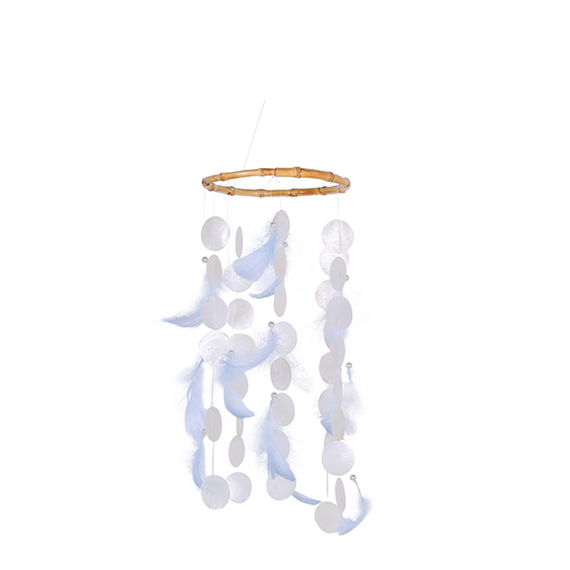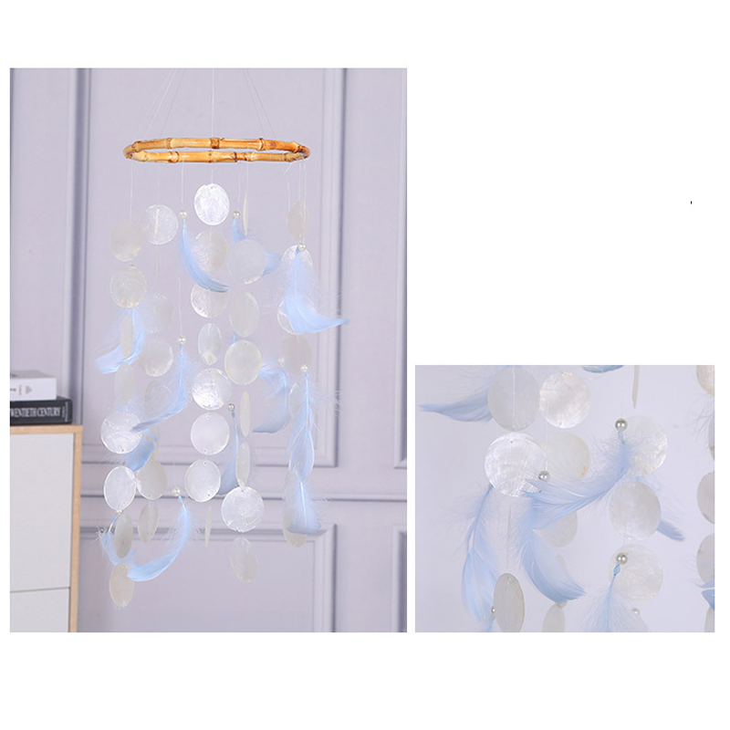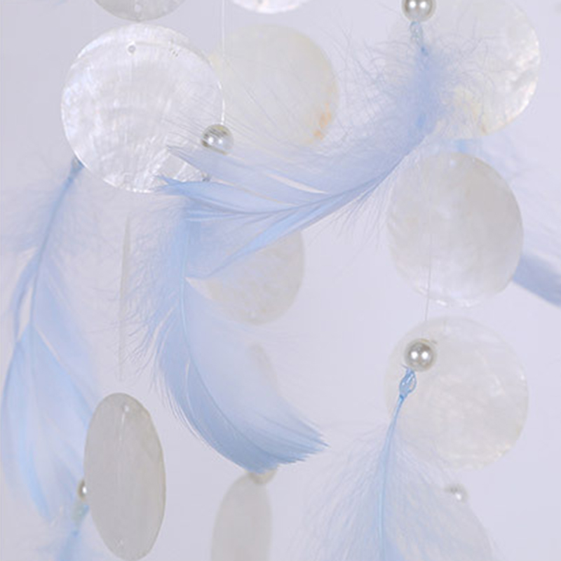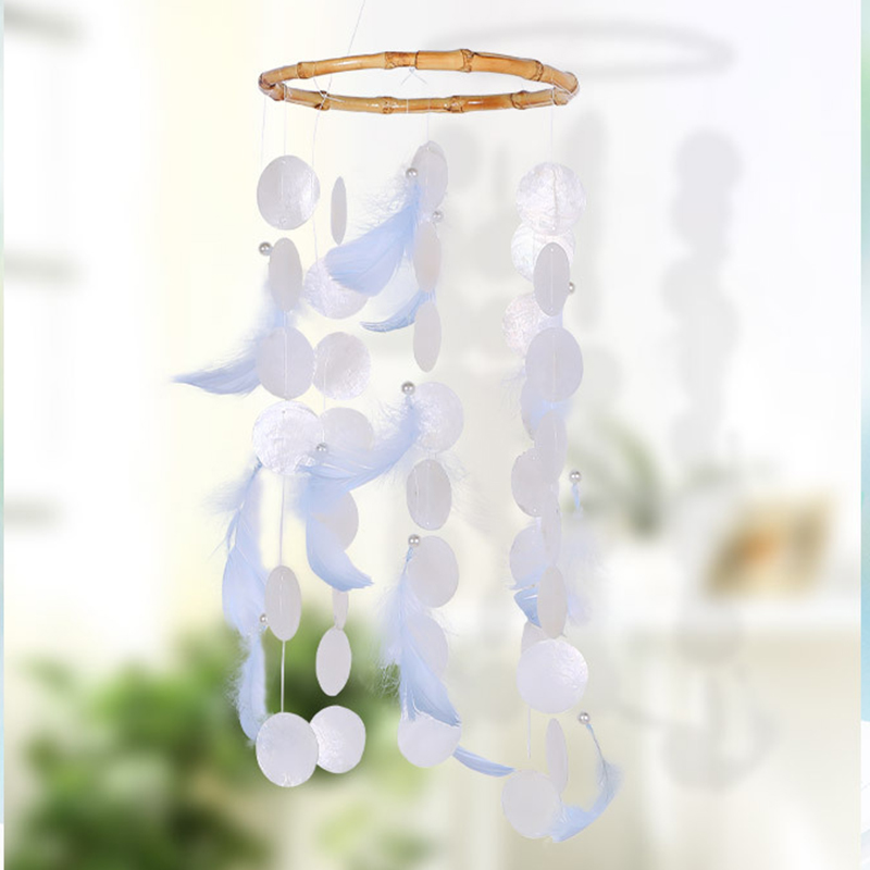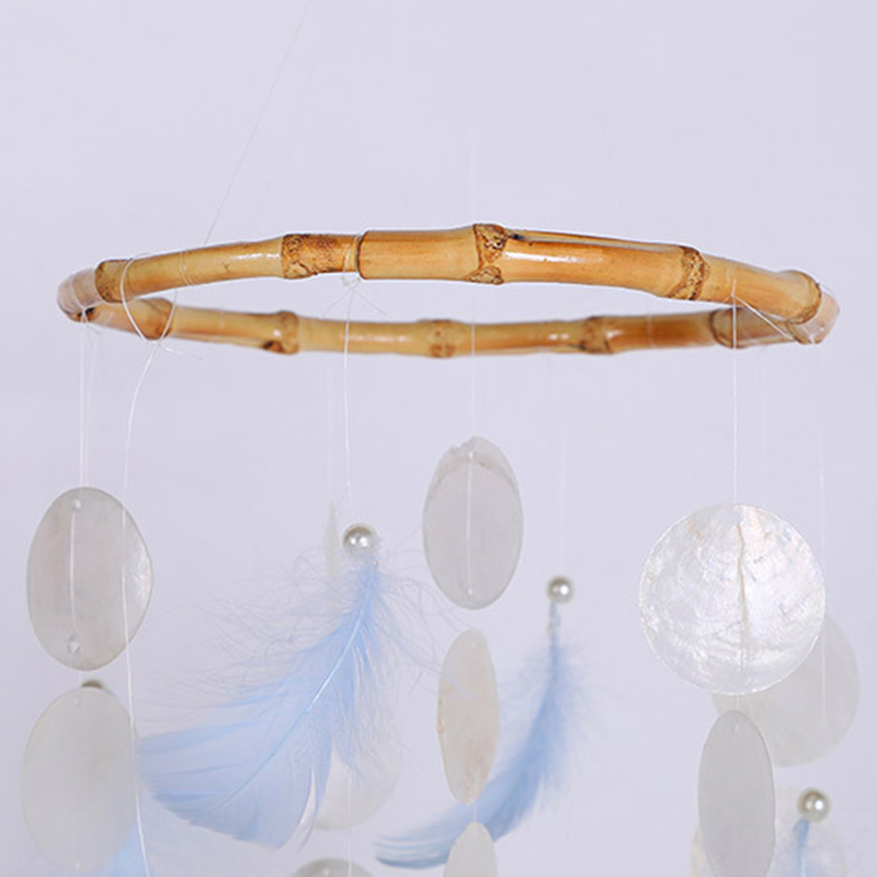 5. Материал: подарок с колокольчиком сделан из искусственных перьев, жемчуга, раковины и дерева. Этот колокольчик может выдерживать ветер и дождь, прочный и красивый.