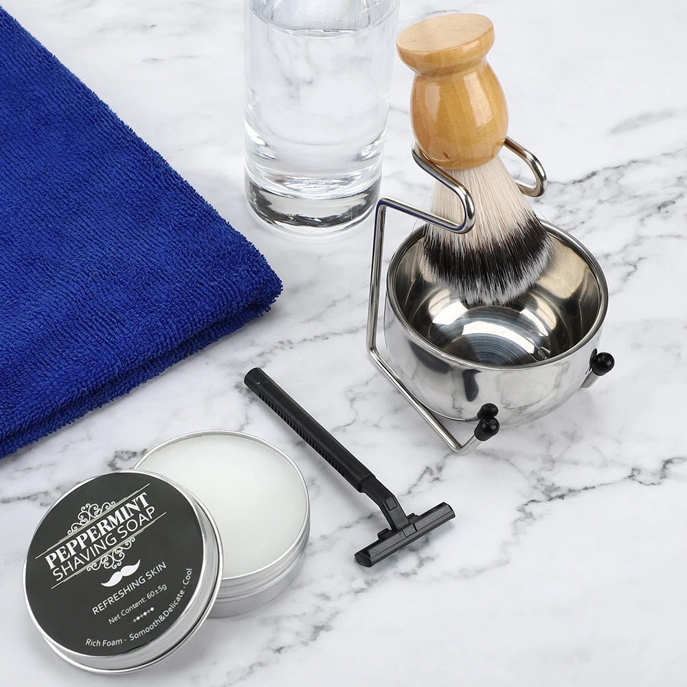 3 в 1 Набор для бритья Синтетический волос щетка для бритья подставка держатель Кружка чаша набор натуральная твердая деревянная ручка и нержавеющая сталь подставка для бритья с чашей для бритья для мужчин влажное Бритье