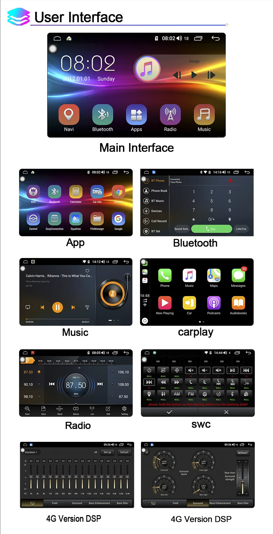 Мы предоставляем обновления для прошивки, программного обеспечения, gps-навигационных карт бесплатно. И благодаря встроенному усилению 4*45 Вт музыка становится четкой даже при высоких объемах. По индивидуальному заказу звуковая с вашими личными предпочтениями с 9 графический эквалайзер. Pop, Rock, Jazz, Classic, Flat, User, Voice. Несколько вариантов настройки позволяют адаптировать аудио опыт по своему вкусу