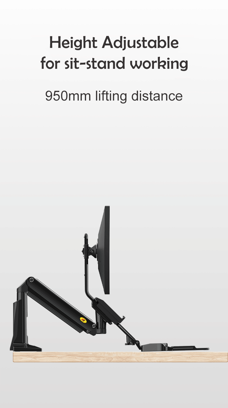 Регулируемый по высоте дисплей и клавиатура легко перемещаются и одновременно поднимаются для правильной высоты, что позволяет легко садиться или стоять по требованию по вашему выбору. Выдвижная и складная клавиатура обеспечивает настройку клавиатуры и выталкивает руку, когда вам нужна поверхность и пространство вашего стола.