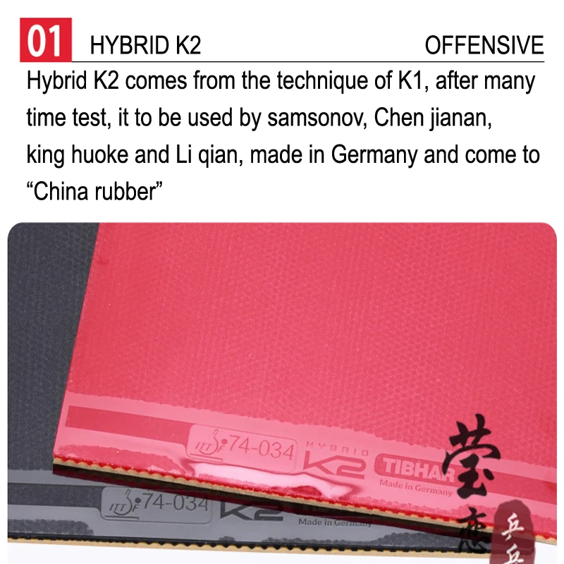 В течение всего года более 12 различных тестов образцов, несколько технологических усовершенствований, всемирно известный Сэм сомф, Чэнь Цзянь ', Цзинь хуо, ли Цянь ...... И единодушная оценка бывших игроков китайской сборной. Mohli -K2 в сочетании с техническими преимуществами разработки смешивания-K1, Германия сделала новое поколение резины «Китай»! Достаточно сложно, достаточно «гибрид» на вершине набора клейкой технологии, в новый сплоченный набор немецкой компании резинового процесса, В отличие от структуры губчатого пирога внутренний процесс стабильности и гибкости выходит за рамки воображения, отличается от «покрытия», Резина hurley - K2 с вязкой в сочетании с небольшой губкой с отверстием, вращается на высокой скорости и обладает большим преимуществом и обеспечивает хороший контроль. Mohley-k2 подходит для общего качества ударов, необходимого для агрессивных игроков, обеспечивая при этом большую стабильность удара для игроков, которые хорошо защищают и нападают.