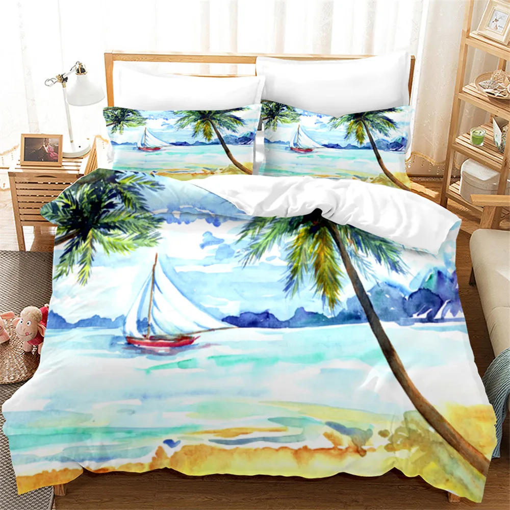 Остров декорации постельное белье красивые роскошные 2/3 шт. Постельное белье Coco Beach Стёганое одеяло с двойным Full Queen King Размеры постельное белье