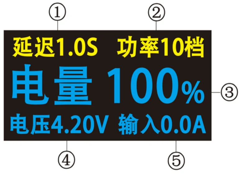 ⑤Выходной ток USB/внутренний дисплей заряда аккумулятора, это дисплей карусели, который автоматически переключается каждые 2 секунды
