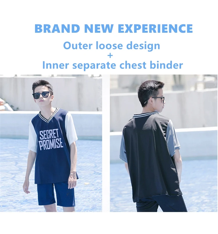 Купальные костюмы из трех предметов: рубашка для плавания + плавки + повязка на грудь. Предназначен для транссексуалов, FTM, Tomboys, Ts, лесбиянок. Спортивный Купальный костюм, лучший выбор для летнего пляжа. Или как спортивный бюстгальтер, прочный эластичный ремешок на груди, делает грудь плоской и становится прохладной.