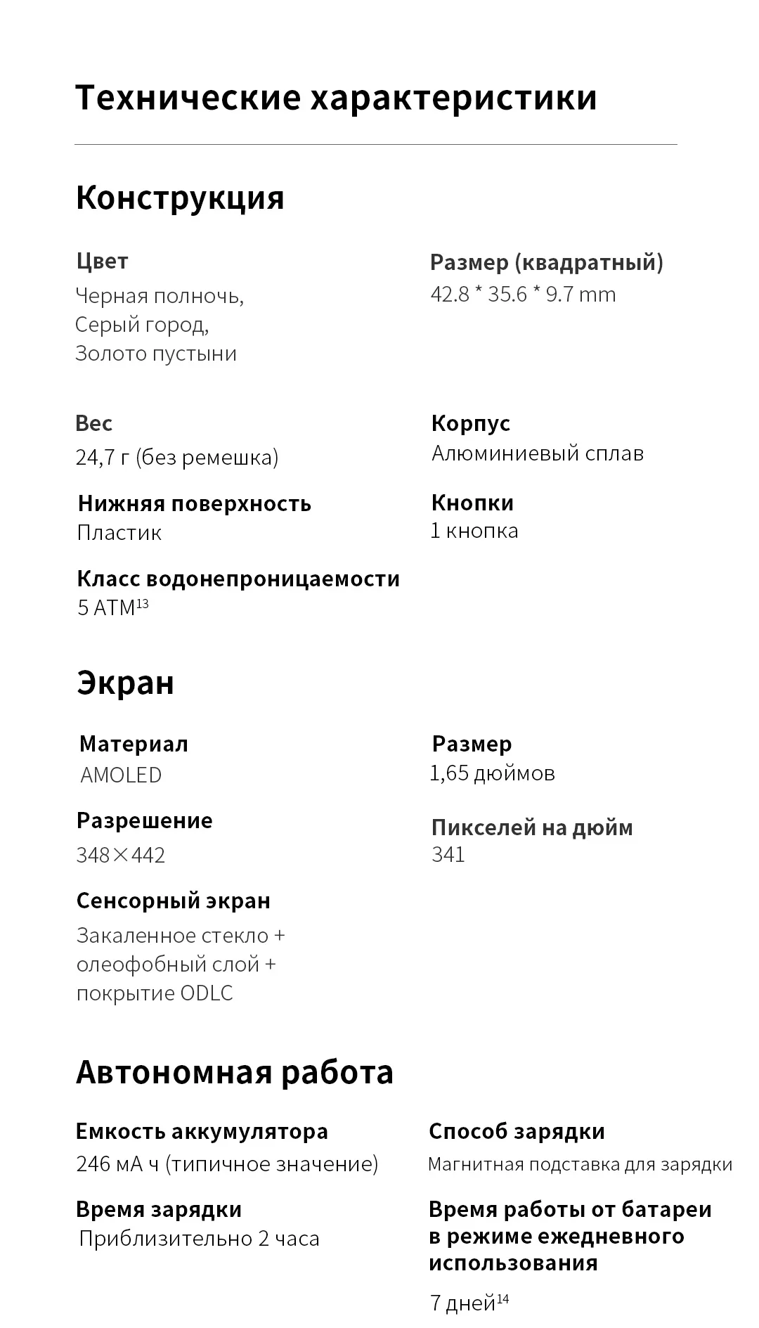 Характеристики