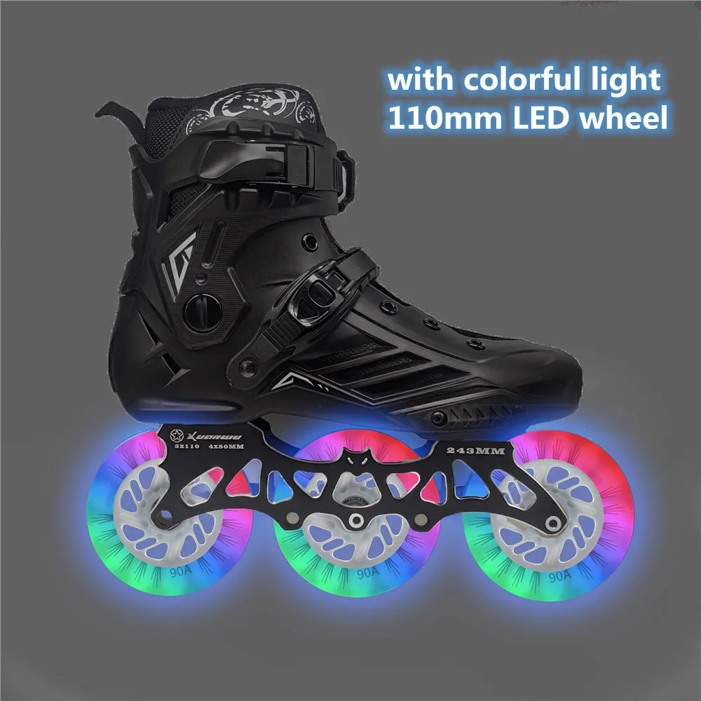 3 колеса светодиодный вспышка Встроенные коньки обувь с 3X11 0 мм белый синий зеленый красный розовый светильник Цвет Блеск ролик уличное для скейта Patines 110 мм