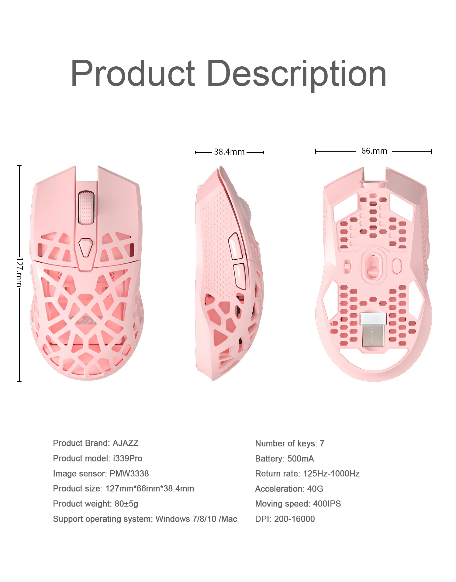 Ajazz i339Pro 16000DPI Беспроводная игровая мышь легкий PixArt PMW3338 чип-драйвер 6 цветов 2,4G светодиодный перезаряжаемый