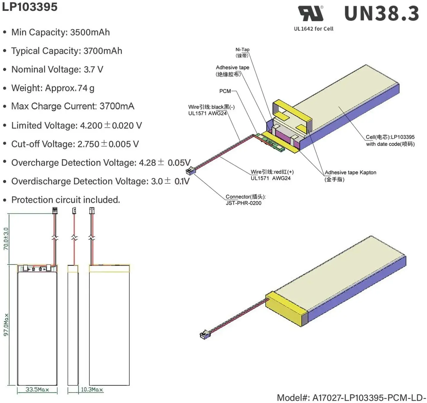 Номинальное напряжение: 3,7 V