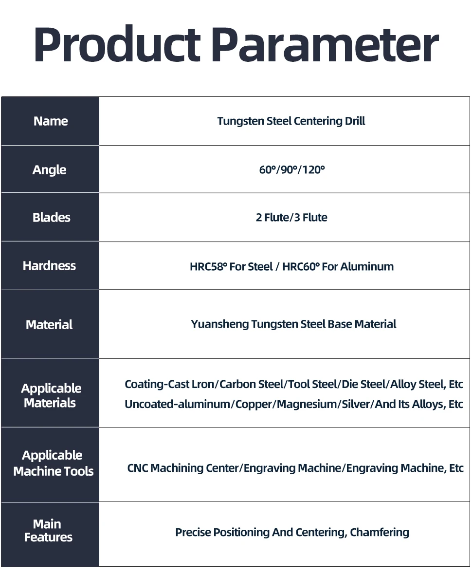 Reserve a chamfer for tapping to facilitate tapping processing. (This kind of centering drill can only be chamfered, not drilling) 2. The centering drill is suitable for high-speed and long-term drilling.