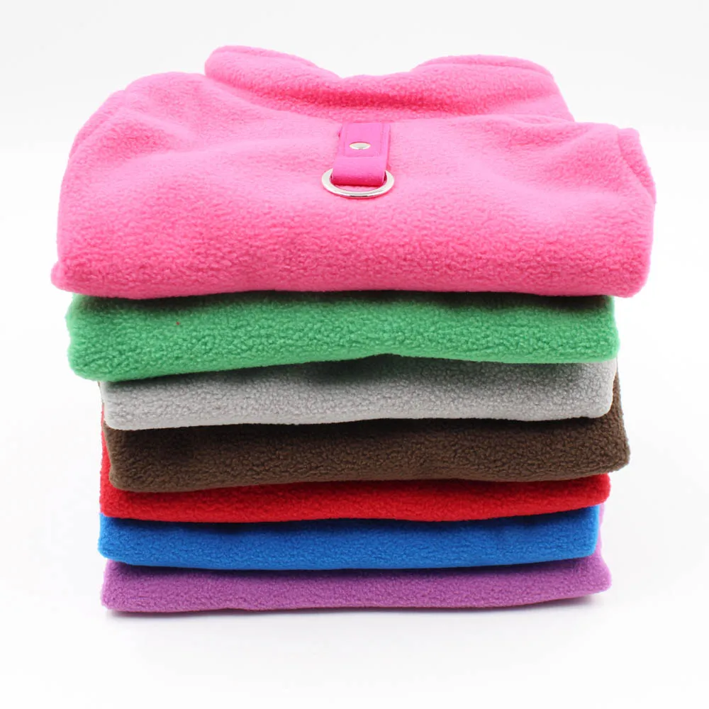 Теплый жилет для собак одежда из мягкого флиса для маленьких собак Одежда для щенков костюмы Чихуахуа французского бульдога футболка с ремнем на поводке кольцо
