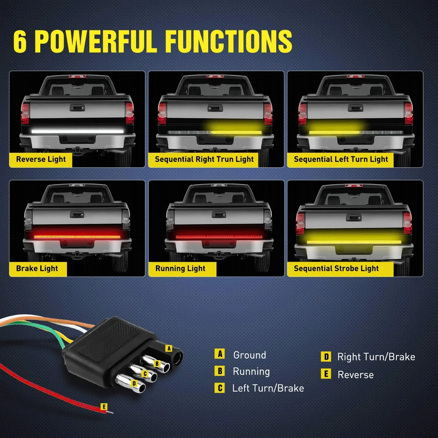 Название продукта: 48/60 дюймов 12V Автомобильные тормоза поворота светильник Предупреждение сигнал гибкий Светодиодные ленты бар задние бег обратный двойная вспышка лампа для грузовика