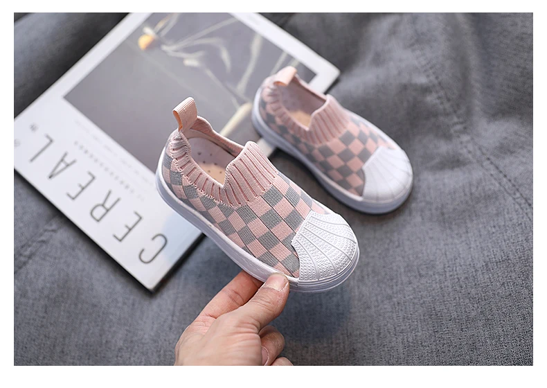 Модные черно-белые лоферы; Обувь для мальчиков и девочек; Детские кроссовки без застежки с острым носком; Вязаные носки; Детские кроссовки; zapatos niño