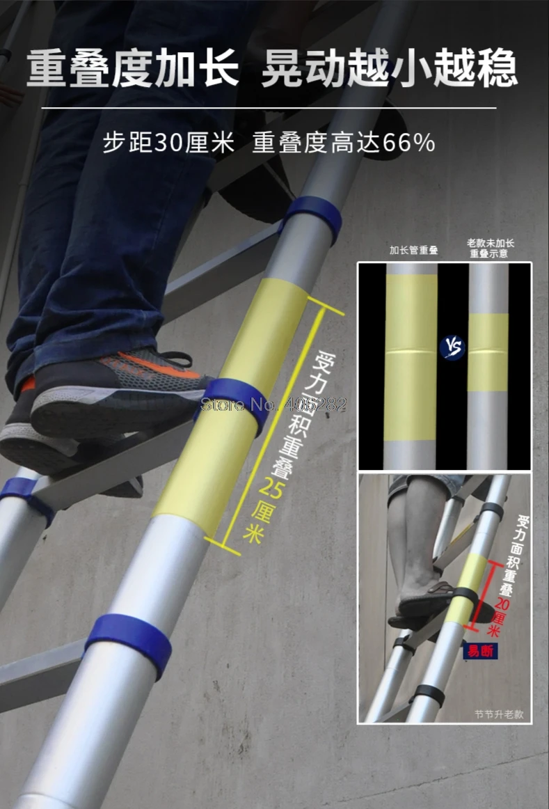 Using high-quality materials, it is stronger and safer.The overlap is longer, the smaller the shaking, the more stableAdopt double balance bar designQuick installation of auxiliary wheels, easy to moveTelescopic and portable, various height adjustments, convenient storageThis link is for 4.7M Straight ladder