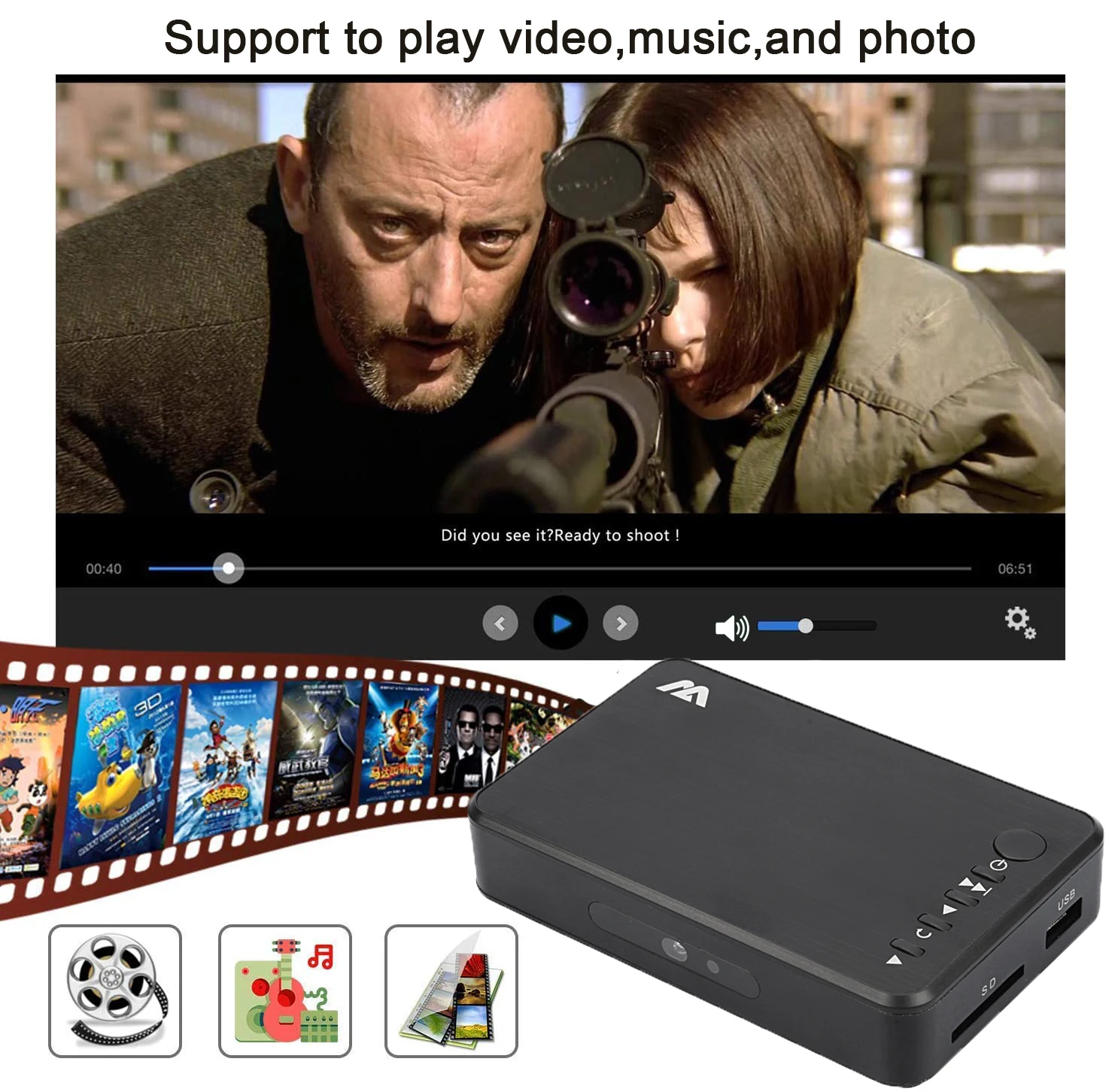 -Поддержка видеофайлов: MKV,TS,M2TS,MTS,WMV,IFO,ISO,VOB,DAT,AVI,MPG,MP4,MOV,RM,RMVB,DIVX,XVID,FLV.
