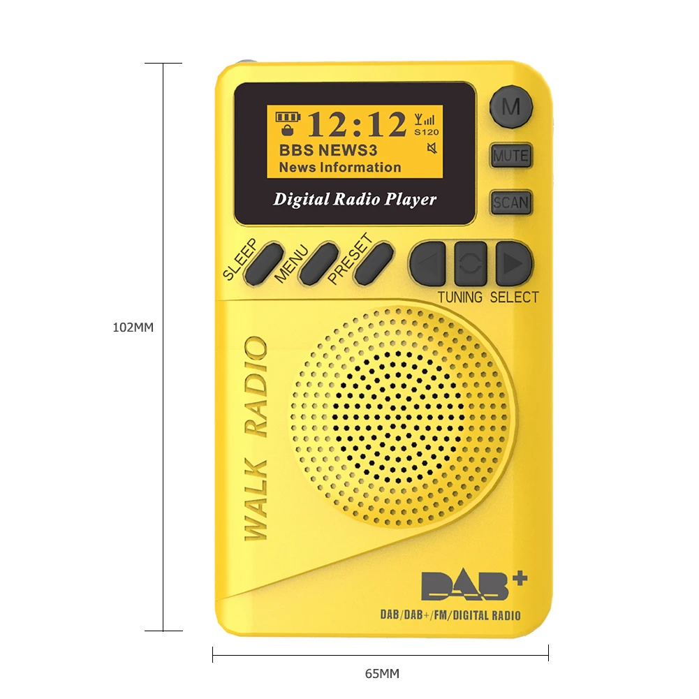 Устройство имеет карманный размер DAB/DAB + цифровое радио, используемое для пеших прогулок, автобусных прогулок или бега. Легко носить с собой в кармане. Слушайте кристально чистое высококачественное цифровое радио DAB + и вашу любимую музыку на этом радио DAB +, вы также можете использовать это устройство для приема fm-радиостанций. Это устройство может воспроизводить музыкальный файл MP3 с tf-карты.