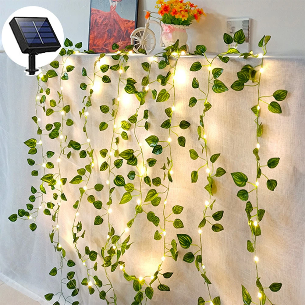 Солнечные Гирлянды Плюща, искусственные лозы, гирлянды, сказочные гирлянды, зеленые листья, лоза, огни со 100 светодиодами для свадебной вечеринки, садовый уличный на стену, забор, декоративные лампы