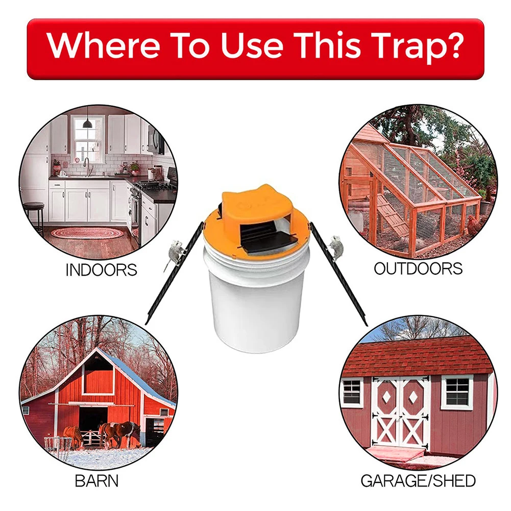Несколько способов использования: эта ловушка была разработана с целью использования в стиле ловли и отпускания, но она может заполнить ведро водой, чтобы сделать ловушку летальной.