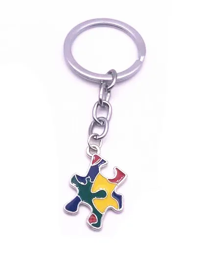 Оптовая продажа 10 шт./лот Эмаль горный хрусталь аутизм осознание головоломки кусок Шарм брелок и брелок для мужчин и женщин лучшие подарки