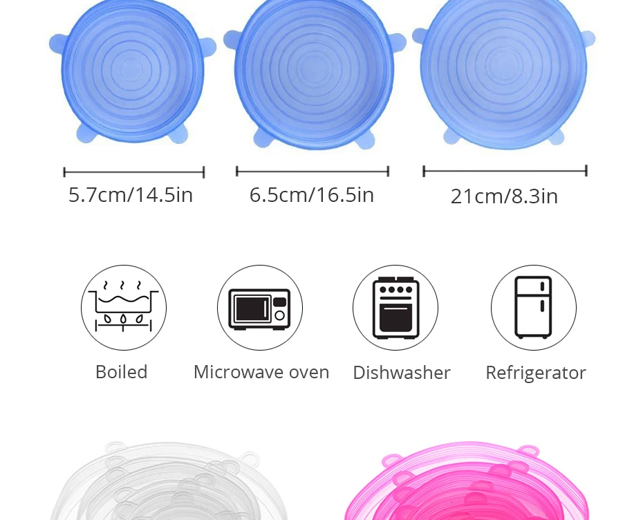 2. Многоразовые крышки для хранения пищи очень гибкие, без деформации, стабильные и прочные, противоскользящие с хорошей эластичностью.