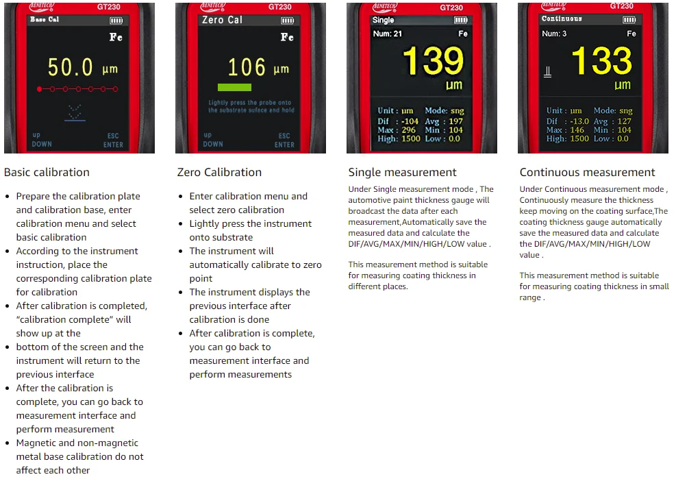 【Два метода калибровки и измерения 】 толщиномер краски встроенный высокоточный зонд, быстрая реакция. Нулевая калибровка и многоточечная функция калибровки, чтобы уменьшить отклонение; Два метода измерения, одно измерение и непрерывное измерение, чтобы сделать значение будет более точным.