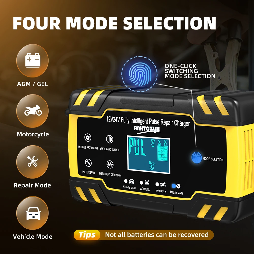 4. Зарядные устройства подходят для большинства типов аккумуляторов, включая кальций, гель и AGM, мокрый батарей. Они также могут помочь восстановить дренированные и серными аккумуляторами.