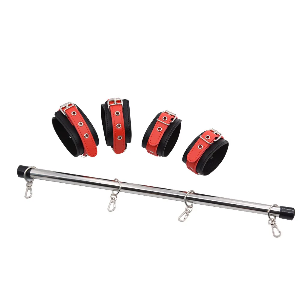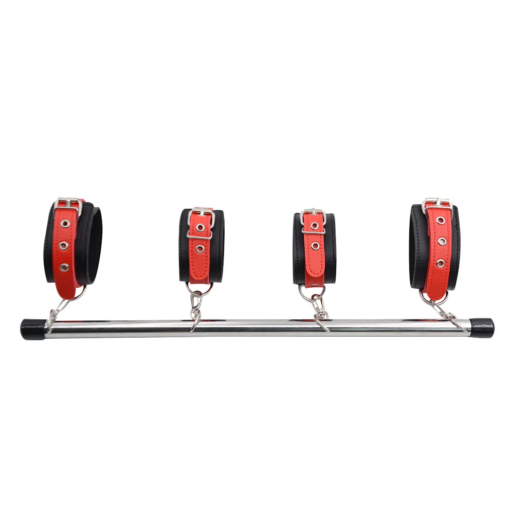 SM Spade Restraint Kit Leg Spreader Bar Set with Leather Cuffs Lock Sex Steel Spreader Bar Bdsm Restraints Bondage Set Gear