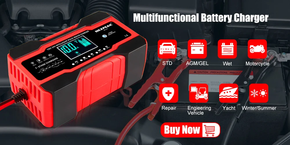 Подходит для свинцово-кислотных аккумуляторов 12v 2ah-150ah /24v 2ah-100ah (литиевая батарея запрещена)