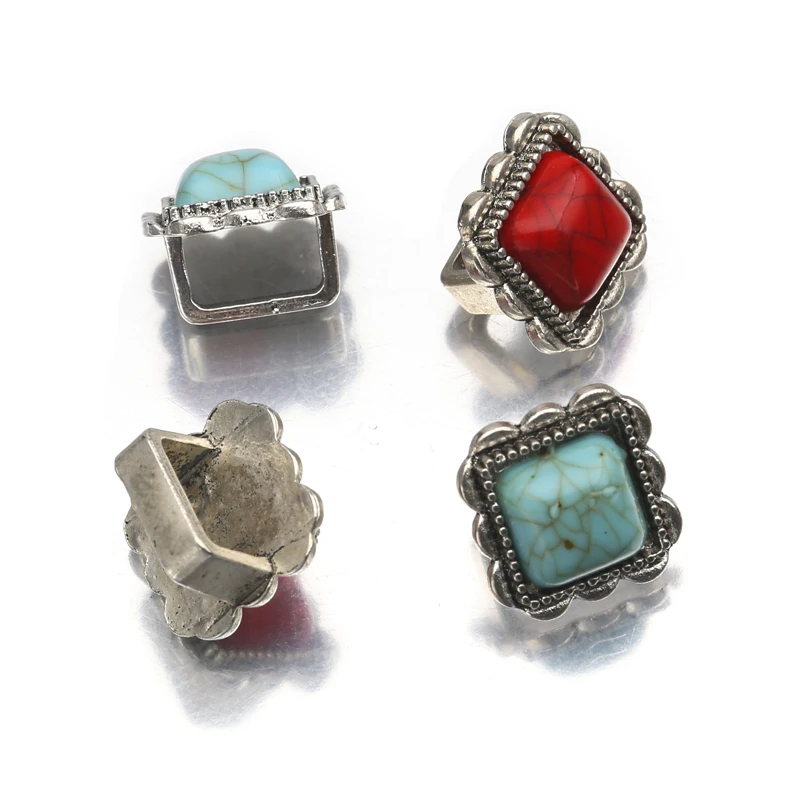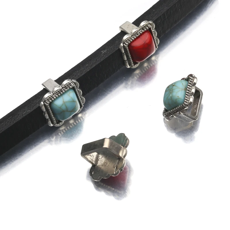 5 шт./лот тибетский серебряный квадратный акриловый Бирюзовый слайдер бусины для плоского кожаного шнура Браслет ювелирные изделия принадлежности