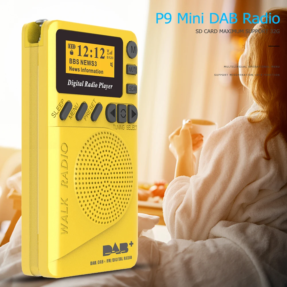 DAB-P9 цифровой карманный мини 1,44 дюймов ЖК-дисплей Портативный fm-радио MP3-плеер Поддержка TF карта для спорта бега фитнеса
